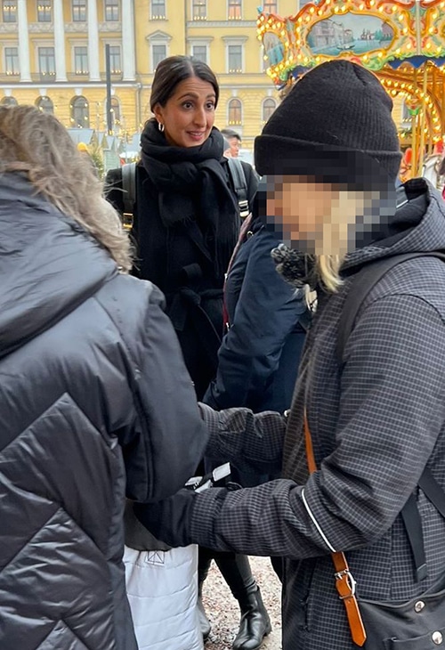 Ex-kansanedustaja Nasima Razmyar, 38, nautti joulutunnelmista Helsingin Senaatintorilla, jonne on pystytetty perinteiset Tuomaan markkinat.