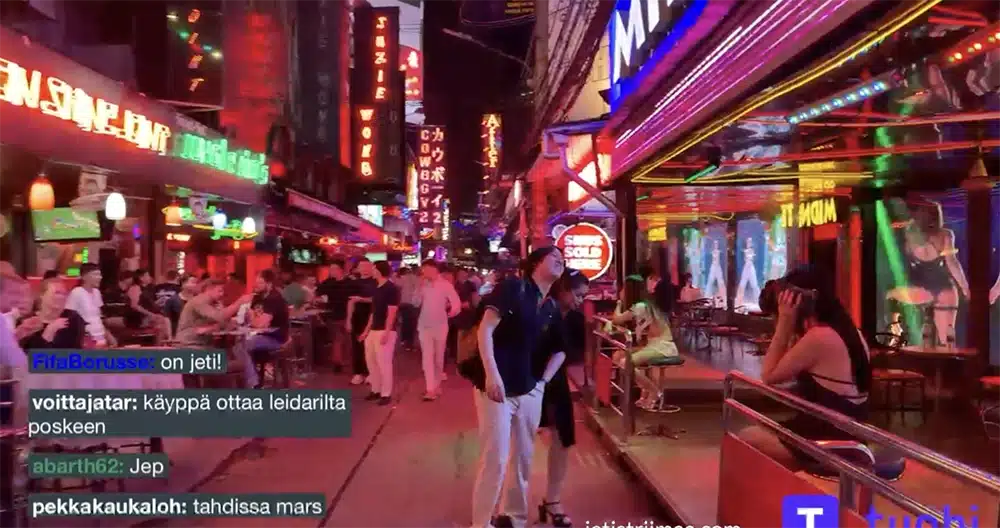 Kommentointi oli ajoittain hyvin suoraa ja karkeaa. Striimissä esitettiin viittauksia paikallisiin seksityöläisiin ja niin kutsuttuihin ladyboyhin eli ”leidareihin”, ja käytetty kieli oli paikoin hyvinkin värikästä. Lähetyksessä sinkoili ”horo” ja ”transu” huutelua suuntaan jos toiseen.