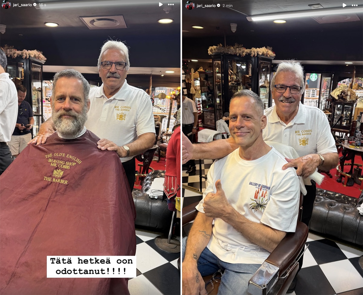 Pitkä, harmaantunut parta sai kyytiä, hiukset trimmattiin siistiksi ja muutos oli välitön. Parturikäynnin jälkeen Saario näytti kuin suoraan uudestisyntyneeltä: kymmenen vuotta karisi pois yhdeltä istumalta.