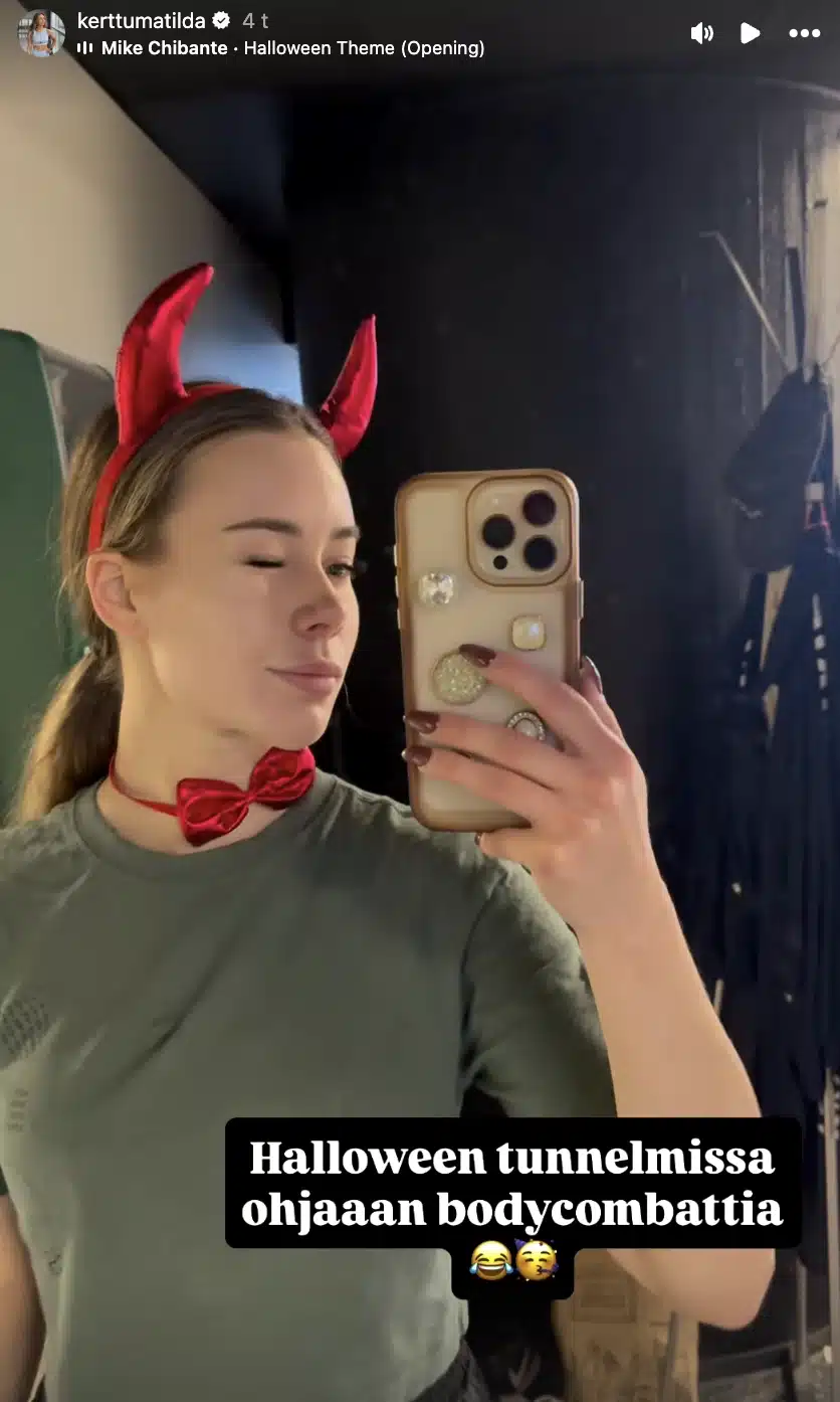– Halloween tunnelmissa ohjaan bodycombattia, Kerttu kirjoittaa stoorissaan.