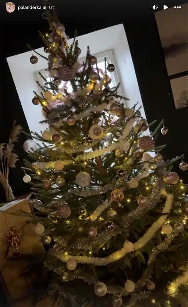 Virossa saman joulukuusen äärellä poseeraa myös Kalle. Instagram stooreissaan hän fiilistelee uunissa paistuvaa joulukinkkua ja esittelee perheen ensimmäistä aitoa joulukuusta.