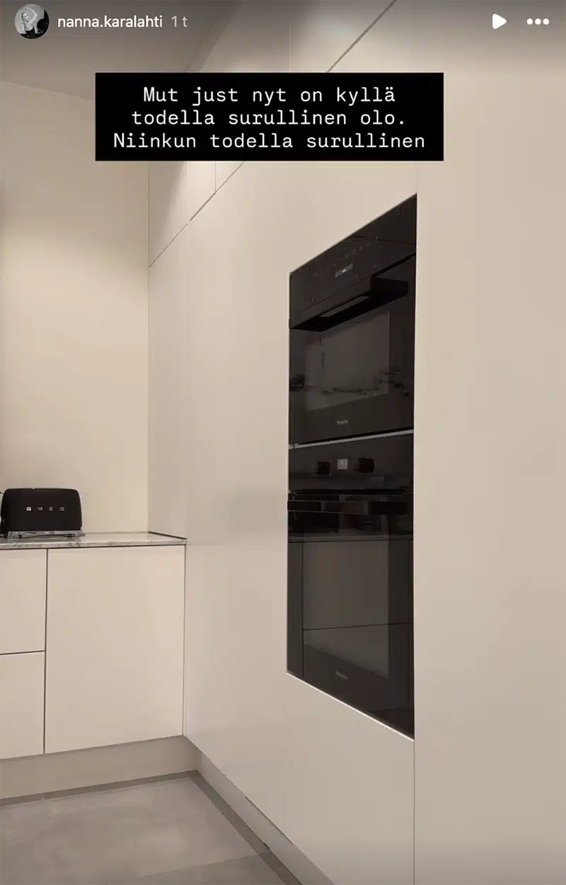 Seuraavassa Instagram-tarinassaan Nanna on kuvannut asuntonsa seinää.