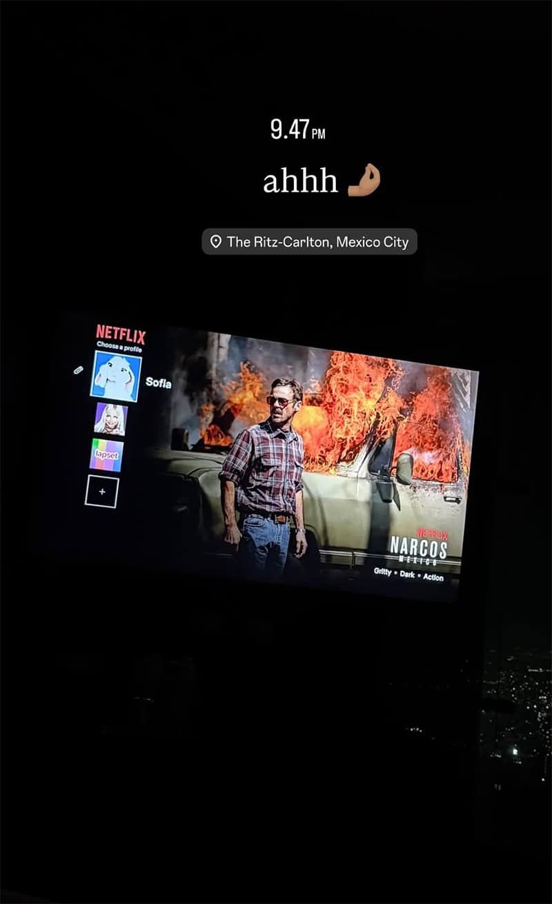 Sofia katseli Netflixin Narcos-sarjaa majoittuessaan The Ritz Carltonissa Mexico Cityssä.