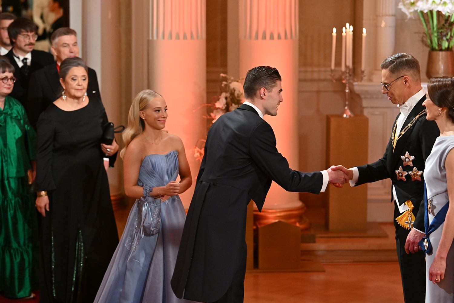 Laulaja Robin Packalen, 27, saapui Itsenäisyyspäivän juhlavastaanotolle näyttävässä seurassa, kun rinnalla kulki hänen upea kihlattunsa Aura Ansaharju.