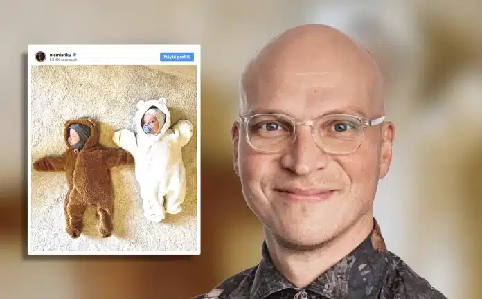 Näyttelijä Riku Nieminen julkaisi Instagramissa kuvan kaksosistaan, jotka on puettu suloisiin, teddykarvaisiin haalareihin nallekorvineen. Nieminen paljasti syyskuussa saavansa perheenlisäystä.