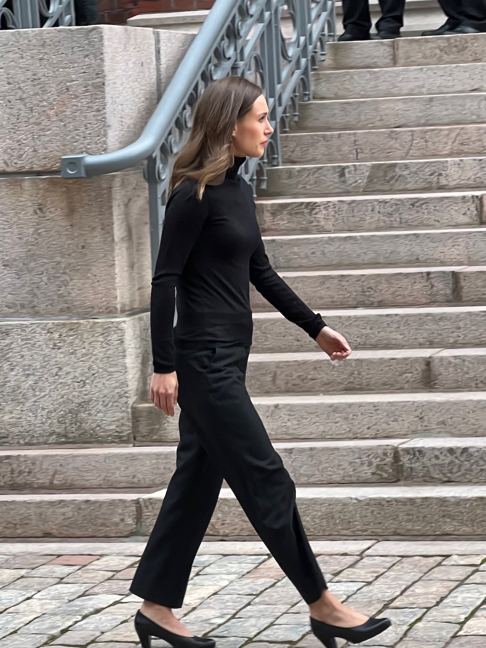 Mut muistahan on aina hyvä väri, ja sopii pääministerille. Kyllä hänellä on muitakin värejä ollut, kauniita neuleita ja takkeja. Kyllä minusta musta on hyvä väri kun lähtee maailmalle edustamaan.