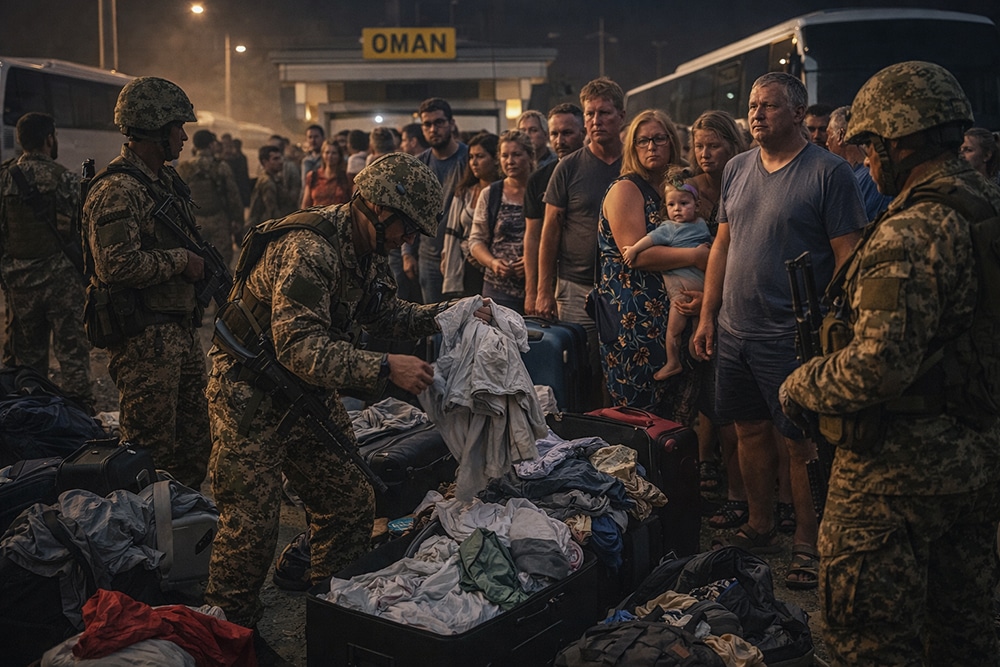Ensimmäinen pysähdys tehtiin Abu Dhabin rajalla. Seuraava heti Omanin rajalla, jossa passit tarkistettiin uudelleen.