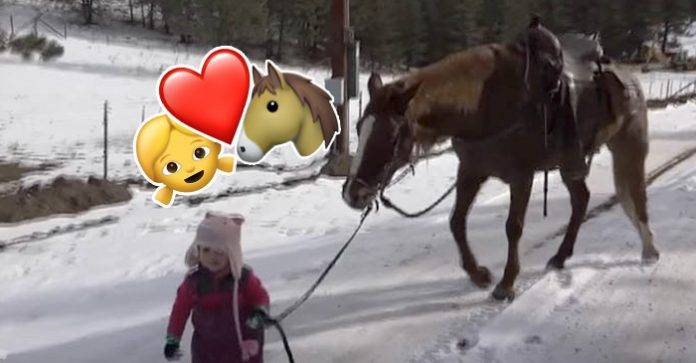 Pieni tyttö on kävelyllä suuren hevosen kanssa – video sulattanut miljoonien sydämet