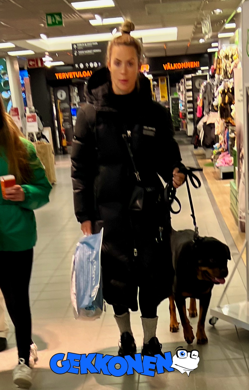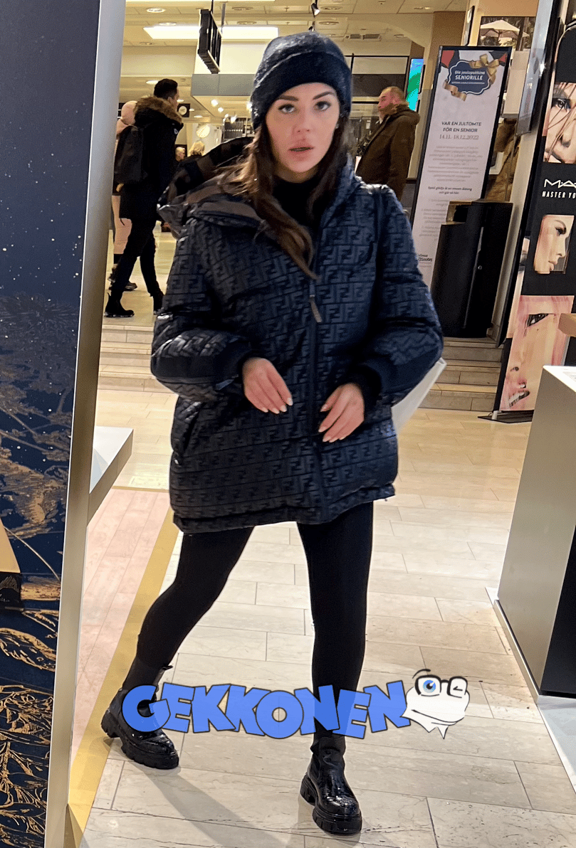 Sofia Belórf pakeni lumimyrskyä Stockmann-tavarataloon joulukuussa.