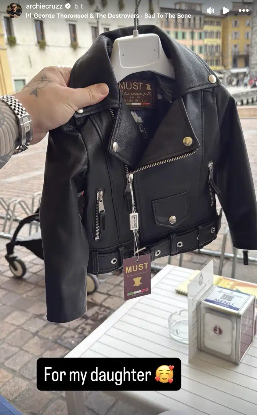 Ihan täysin Archie ei ole unohtanut perhettään, ainakaan tytärtään. Rokkari on ehtinyt shoppailla 10-kuukautiselle tyttärelleen tyylikkään nahkarotsin. Tuleekohan pienestä tytöstä isänsä tapaan rokkitähti?